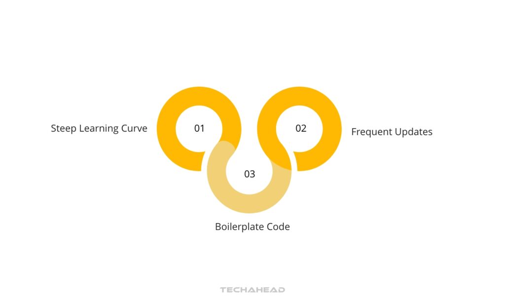 React’s ecosystem evolves rapidly, which means developers need to keep up with frequent updates and best practices which can be challenging.